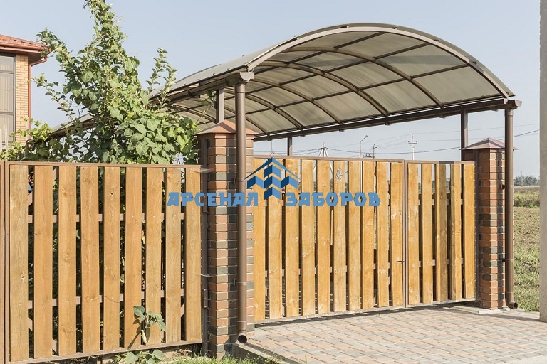 Стандартные характеристики каркаса навеса: столбы 80х80х3мм.