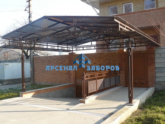 Стандартные характеристики каркаса навеса: столбы 80х80х3мм.
